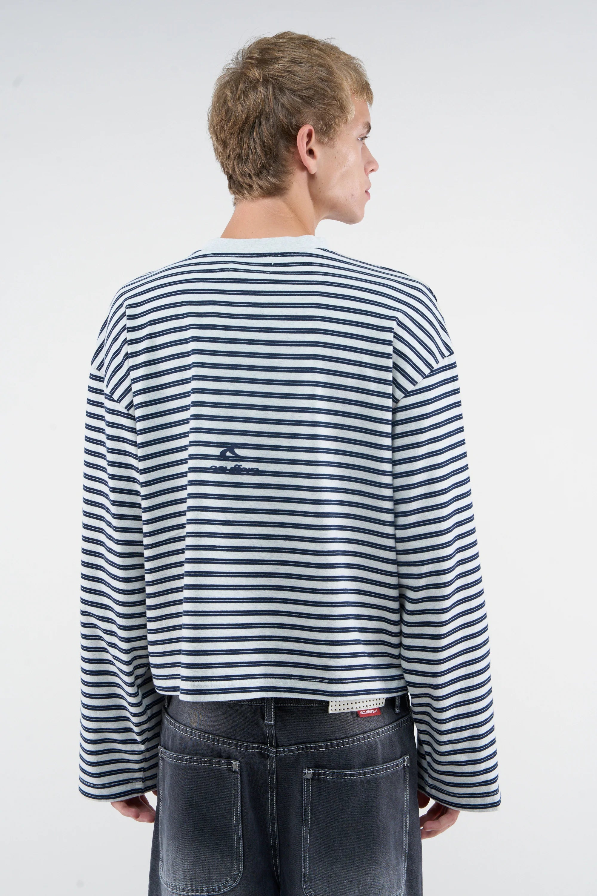 Stay effortlessly stylish with our Raw Striped Navy Long Sleeve, crafted for both comfort and class. Featuring a timeless navy base with sleek contrasting stripes, this piece delivers a perfect blend of minimal design and modern edge.